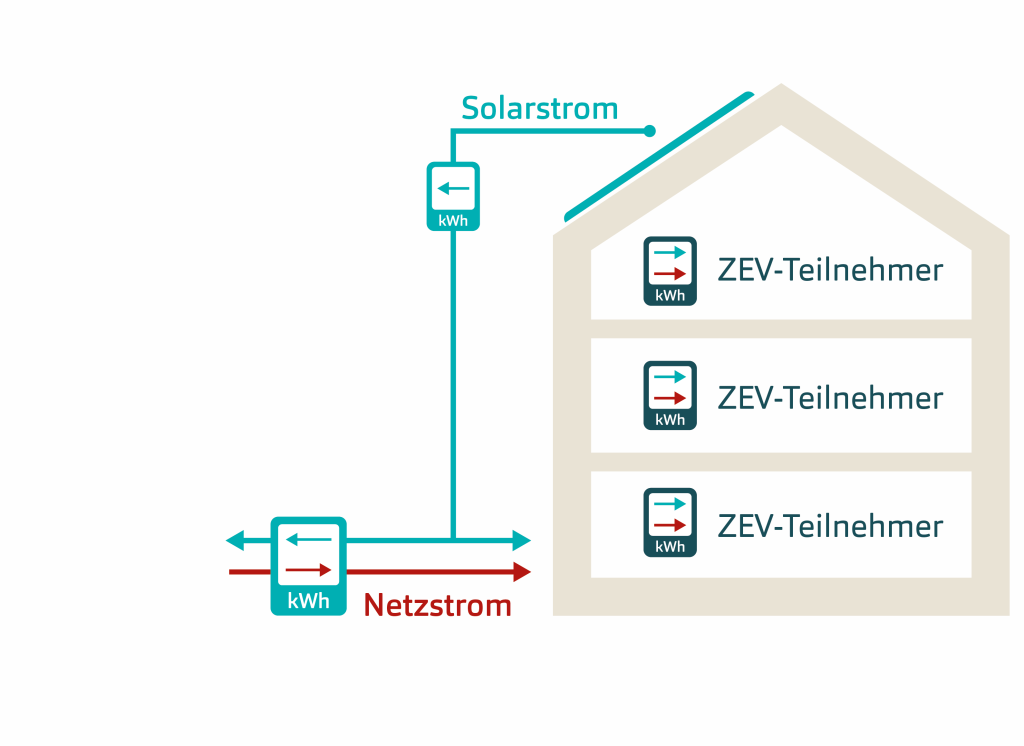 Wenn mehrere Stromverbraucher den auf Ihrer Liegenschaft erzeugten Strom nutzen, entstehen je nach Zeitpunkt verschiedene Stromflüsse. Produziert die PV-Anlage mehr Strom als verbraucht wird, wird der Überschuss ins Netz der IBC eingespeist und vergütet. Wird weniger Strom produziert, wird der restliche Strom aus dem Netz der IBC bezogen. Unser Leistungspaket zur ZEV-Abrechnung umfasst die Installation von geeichten Stromzählern (Smart Meter), die Erfassung und Aufbereitung der Messdaten für die Rechnungsstellung, die Abrechnung und das Inkasso für Endkundinnen und -kunden, den Kundendienst sowie eine Online-Visualisierung.
